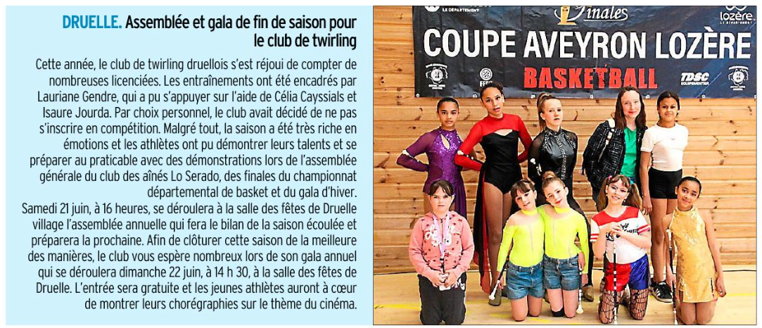 Gala de fin d'année 22 juin 14h30 salle des fêtes Druelle Village
