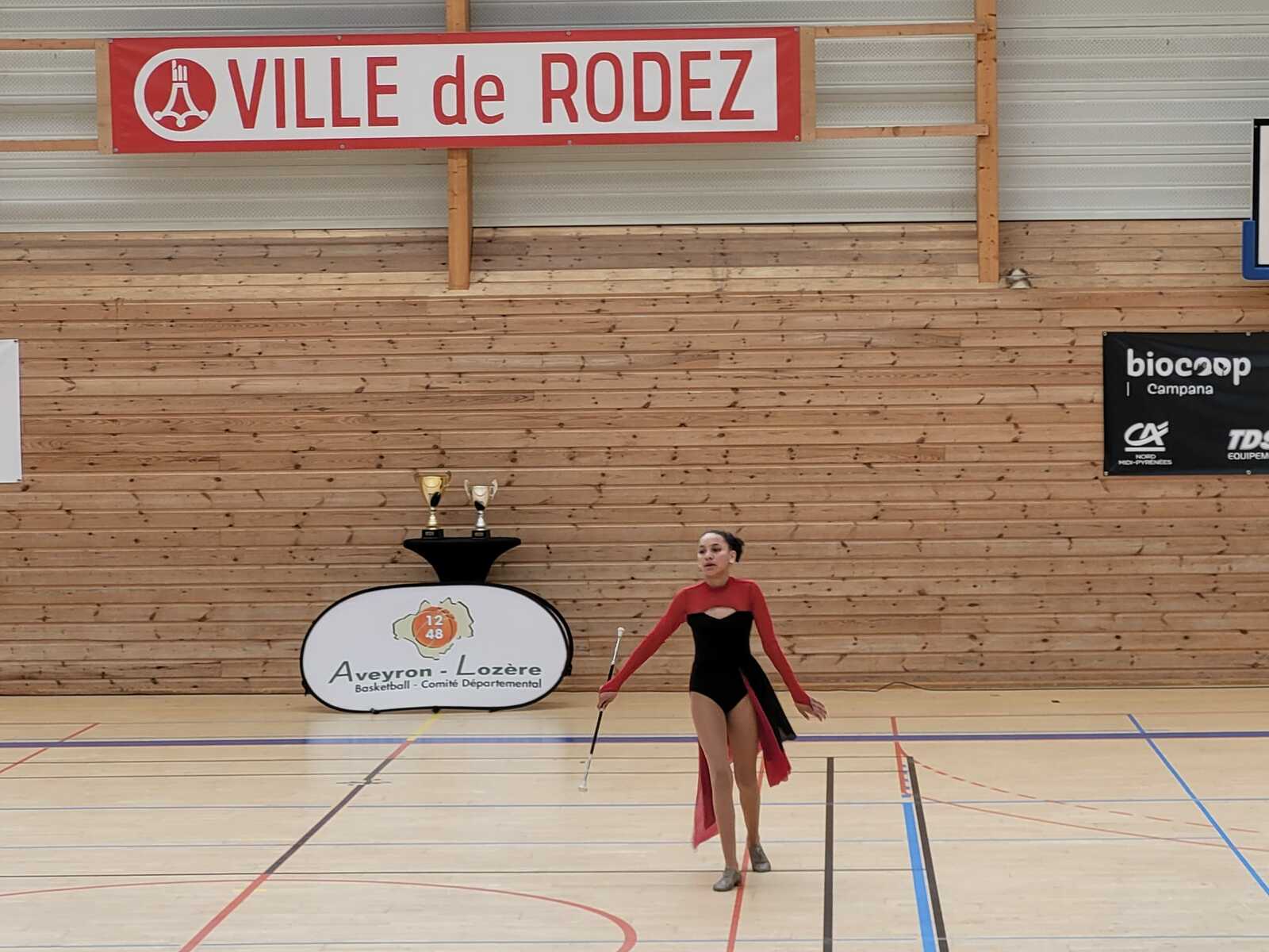 Aujourd'hui jeudi 8 mai, le twirling baton a fait une démonstration durant les mi-temps de matchs de basket finales départementales jeunes à l'amphithéatre.
