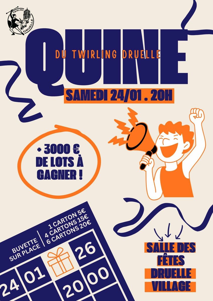 Le club de twirling baton vous attend nombreux le samedi 24 janvier 2026 à 20h salle des fetes village Druelle à son quine annuel.